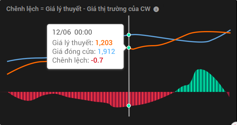 Biểu đồ Chênh lệch = Giá lý thuyết – Giá thị trường của CW