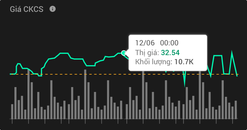 Thể hiện giá và khối lượng khớp lệnh của chứng khoán cơ sở tại các thời điểm trong quá khứ. Nhà đầu tư có thể lựa chọn từng khung thời gian mong muốn như 1 phút, 15 phút, 30 phút, 1 giờ, 1 ngày.
