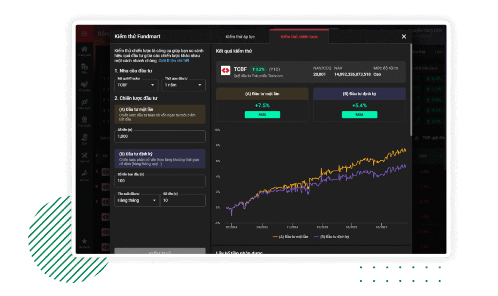 Kiểm thử chiến lược là công cụ giúp bạn so sánh hiệu quả giữa các chiến lược đầu tư một lần, đầu tư định kỳ, hoặc kết hợp cả hai.