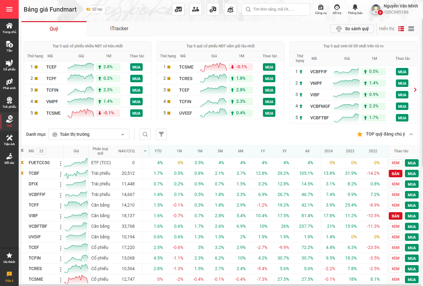 Quý khách đăng nhập vào hệ thống TCInvest, chọn bảng giá Fundmart để xem và lựa chọn Quỹ phù hợp để đầu tư.