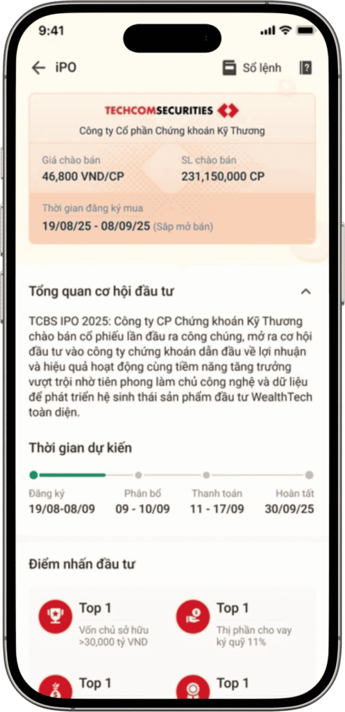 Nhà đầu tư (NĐT) có thể thực hiện đăng ký mua cổ phiếu TCBS 100% online tại tính năng iPO trên hệ thống giao dịch TCInvest. Tham khảo hướng dẫn đăng ký tại đây