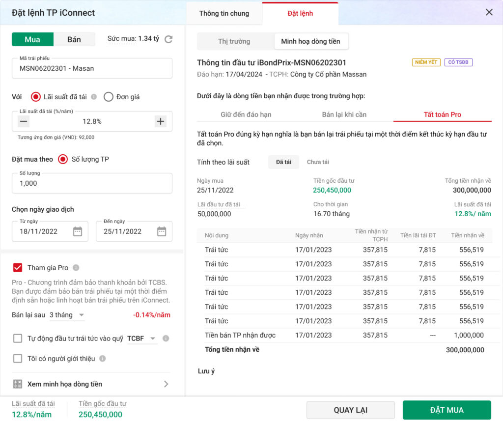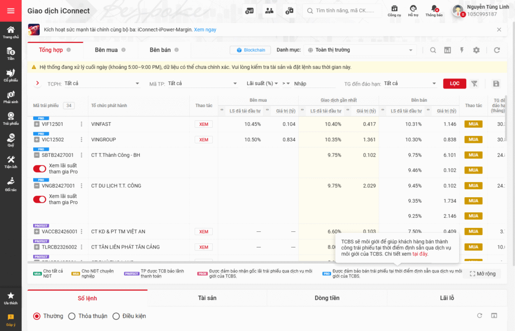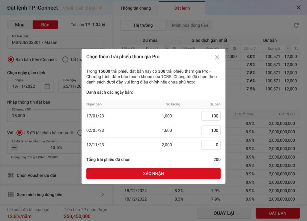 Khách hàng có thể bán trái phiếu trên hệ thống môi giới TP iConnect của TCBS bất kỳ lúc nào. Tuy nhiên, Khách hàng mua lại trái phiếu qua dịch vụ môi giới TP iConnect không được thừa kế hợp đồng môi giới iConnectPro.