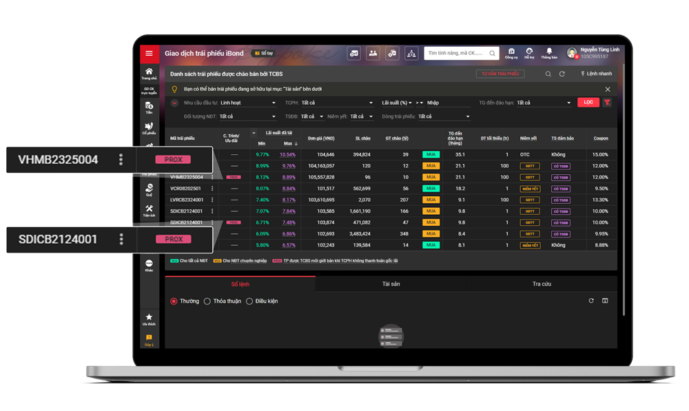 Khách hàng lựa chọn mua bán các trái phiếu có gắn nhãn ProX trong mục Đặt lệnh trái phiếu với quy trình tương tự như giao dịch các loại iBond thông thường.