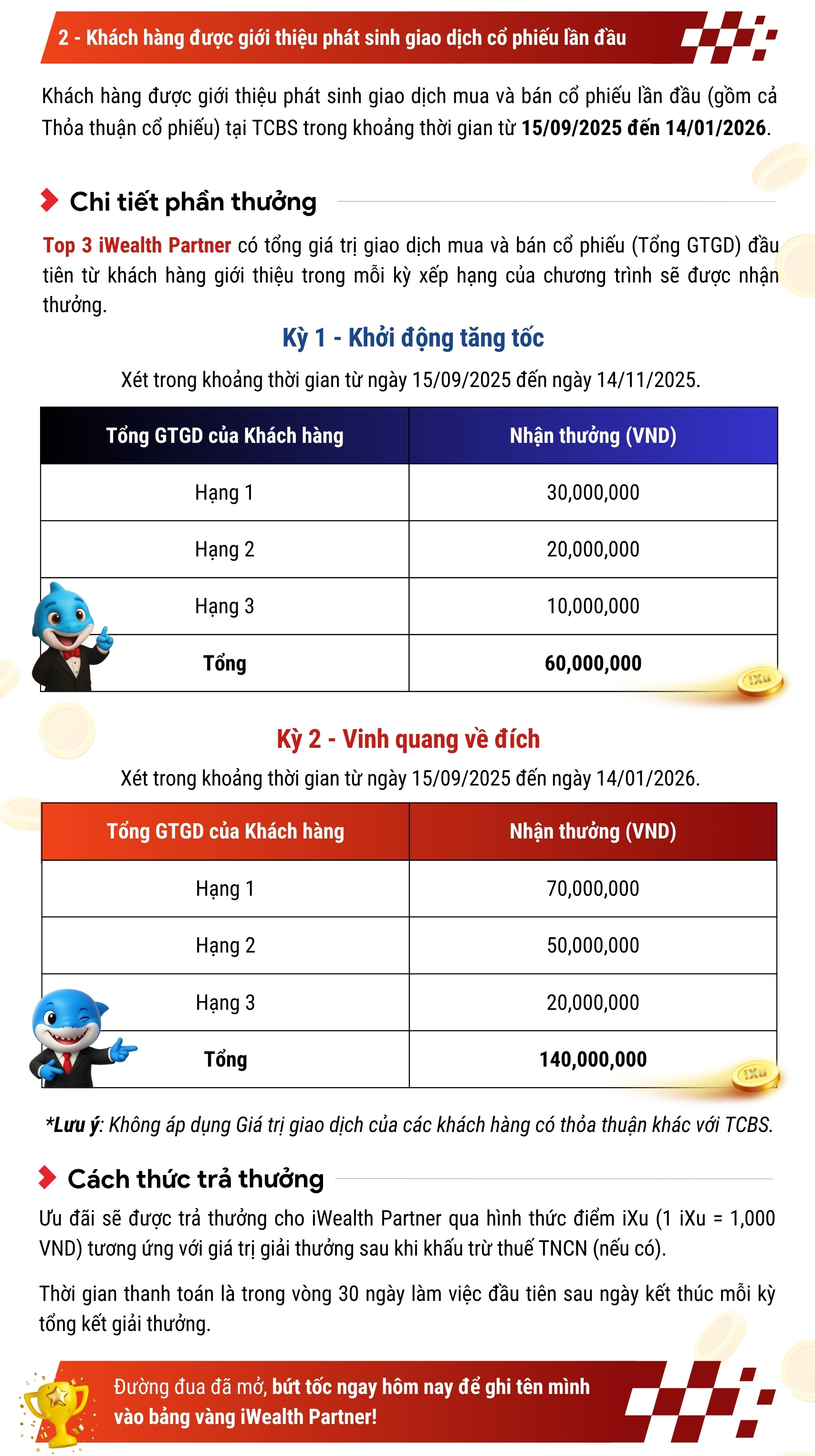 Hệ thống tích điểm và đổi điểm hội viên dành riêng cho Khách hàng TCBS. Hệ thống ghi nhận mọi giao dịch của Quý khách bằng các chương trình tri ân hấp dẫn. iXu được áp dụng công nghệ Blockchain để đảm bảo an toàn và chống gian lận.