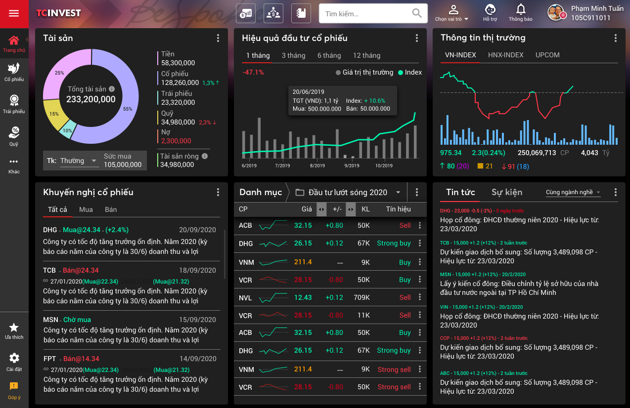 Theo đuổi định hướng Wealthtech, TCBS tập trung phát triển ứng dụng đầu tư và quản lý gia sản cho khách hàng cá nhân trên môi trường trực tuyến, từ bước mở tài khoản đến giao dịch, phân tích đầu tư và tư vấn, tất cả đều được thực hiện 100% online trên ứng dụng TCInvest. Nhờ đó, lượng người dùng và tài khoản được mở mới tại TCBS tiếp tục tăng mạnh trong quý 1/2020, đạt gần 78.000 tài khoản, chiếm hơn 30% toàn thị trường. Lượng truy cập vào TCInvest hàng ngày đã tăng gấp 12 lần trong 1 năm, đạt gần 500 ngàn lượt/ngày tại cuối quý 1/2021.